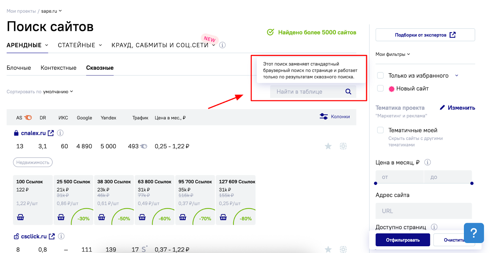 Мы завершили серию обновлений, направленных на повышение скорости и удобства работы со сквозными ссылками в LinksSape. Теперь поиск и навигация по результатам стали заметно быстрее и стабильнее, а работа со сквозными ссылками в системе — проще, интуитивнее и эффективнее, чем когда-либо ранее.