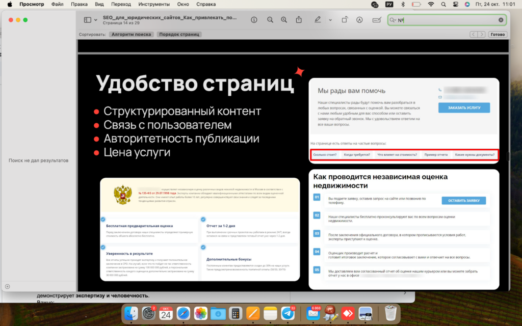 • структурировать тексты (FAQ, преимущества, порядок оказания услуг);