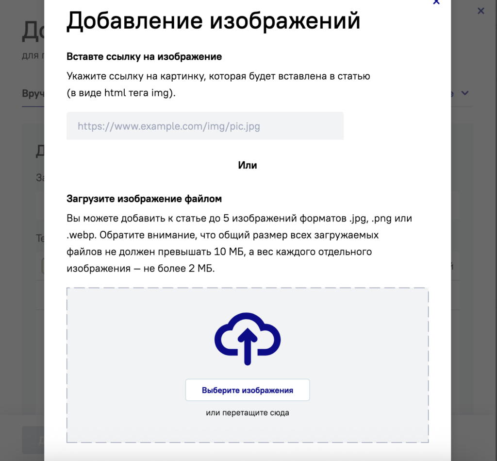 Теперь изображения можно загружать сразу в редакторе при создании статьи. Файлы автоматически сохраняются во внутреннем S3-хранилище LinksSape без сторонних файлообменников и риска потери доступа со временем.